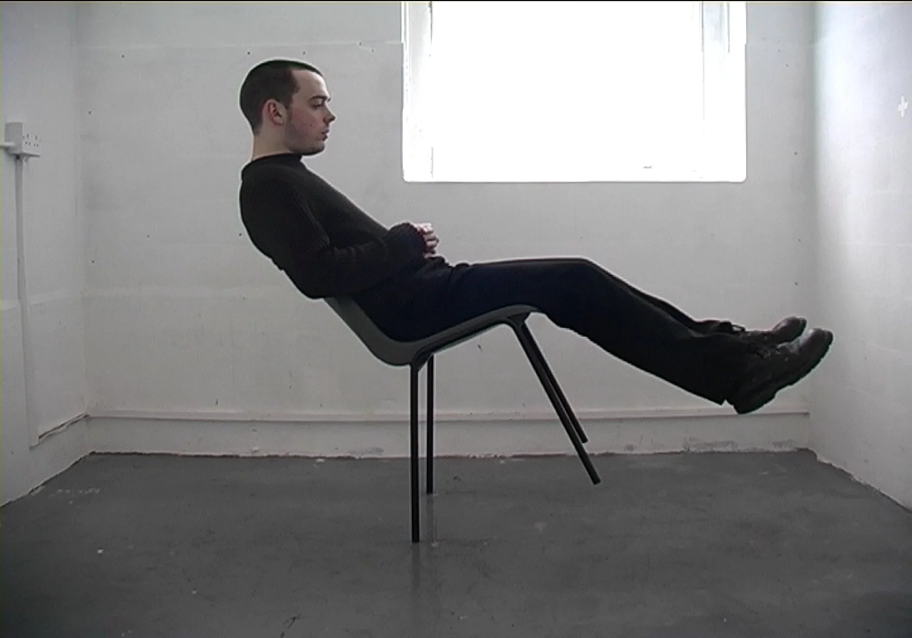 The video piece untitled (2006) demonstrates the exploration of video as sculpture. The work documents what can be seen as a series of attempts in setting up a particular sculptural situation, the artist’s body and a chair in equilibrium. Over the course of an hour both failures and successes are shown candidly.